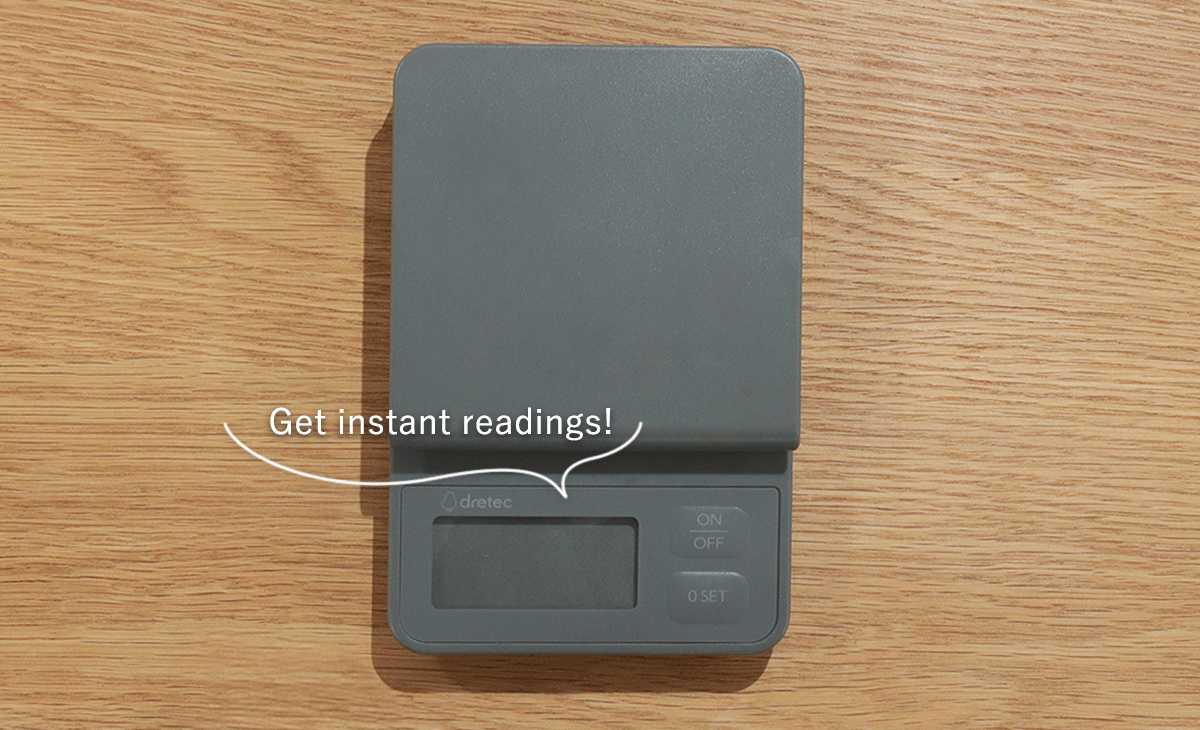 Simply press the “0SET” button to subtract the container’s weight, and easily add ingredients one by one!