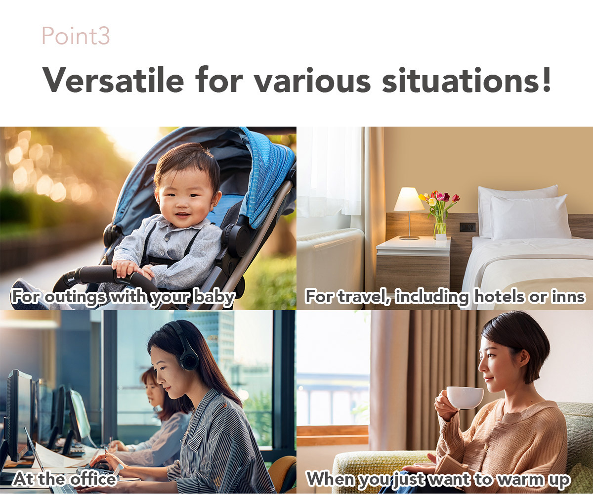 The “Travel Temperature-Controlled Kettle” boils water from 200ml simply by plugging it into an outlet or portable power source!