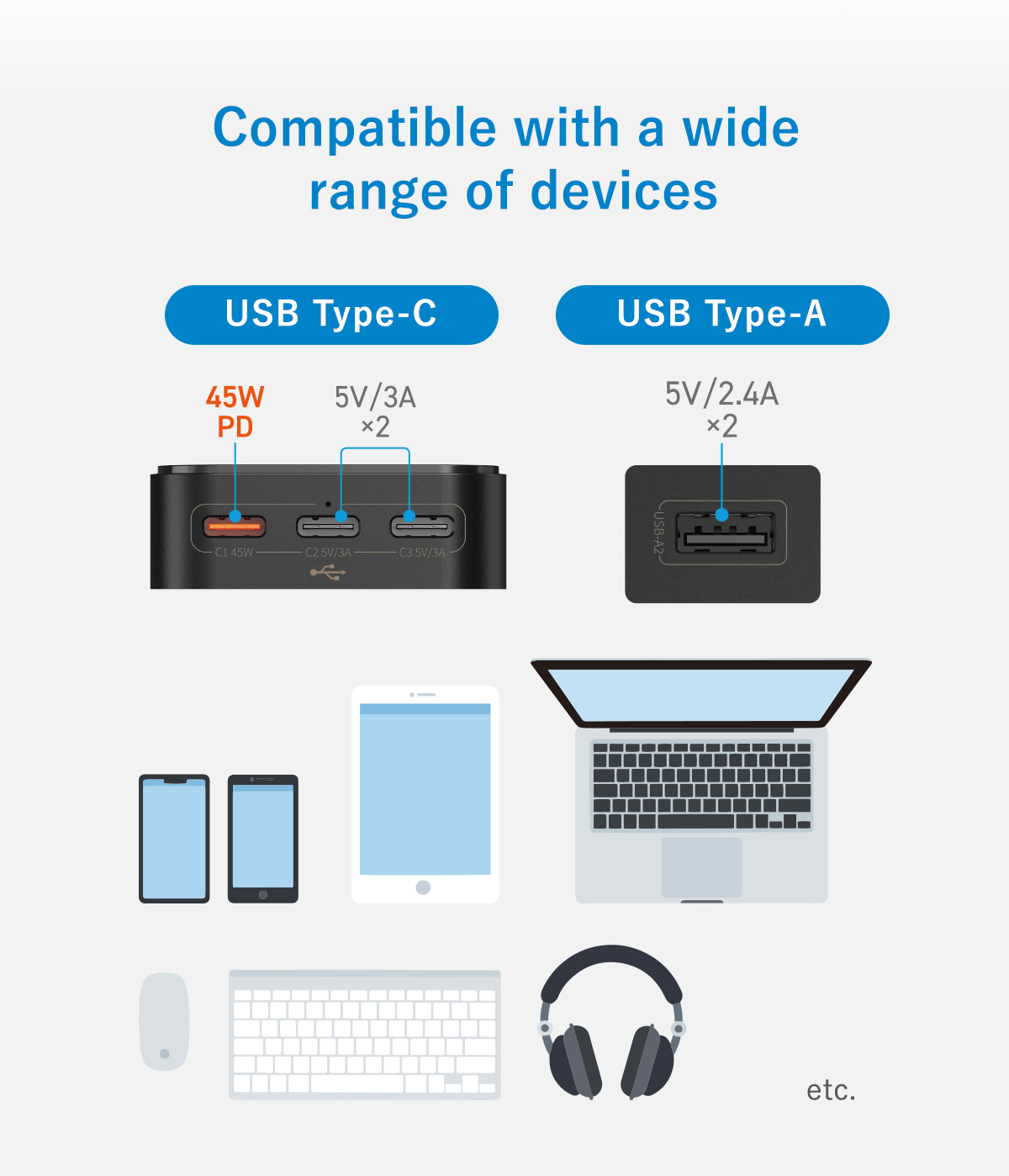 - Type-C port ×1, PD-compatible (45W max for solo use)