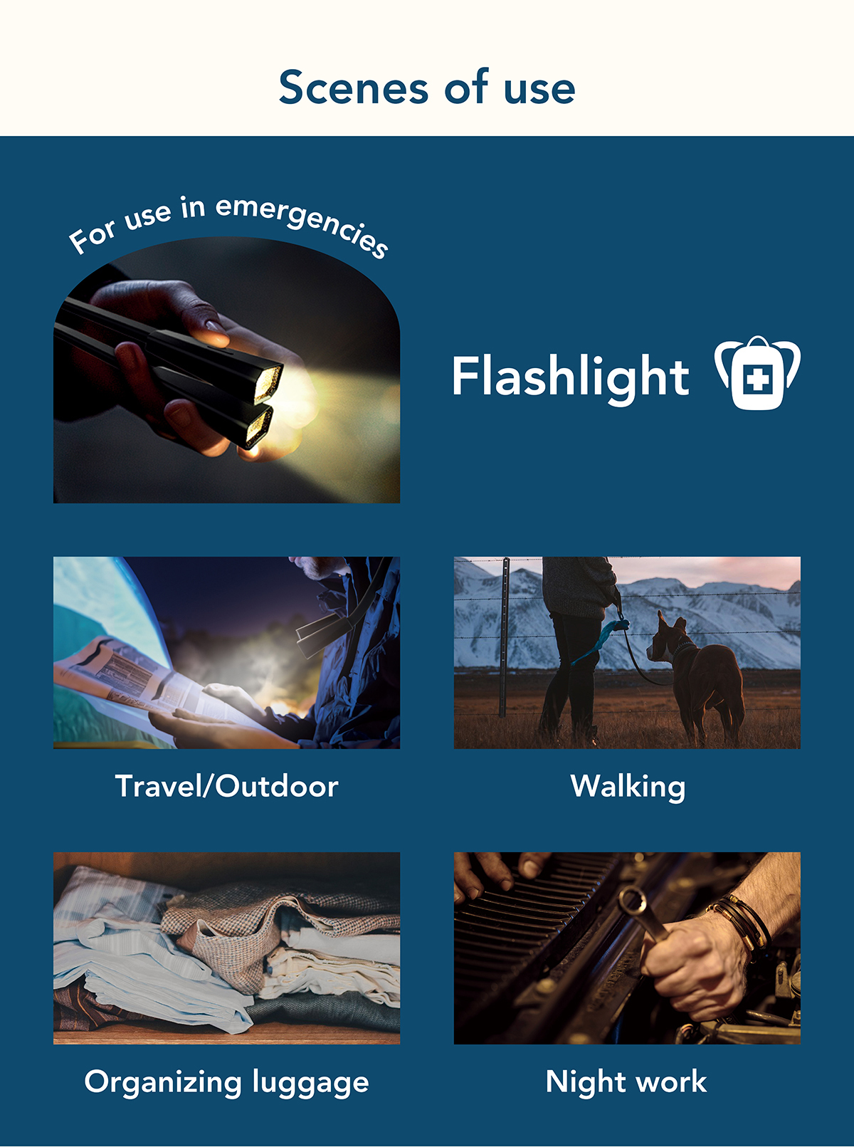 For nighttime walks, working in dark places, and tidying up!