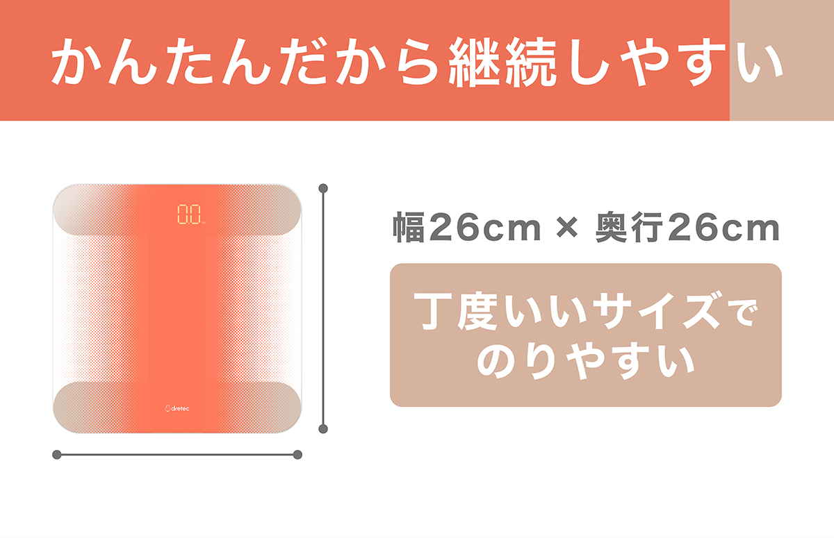 - のって安定する、ちょうどいい測定台サイズ(約 幅26×奥行26cm)