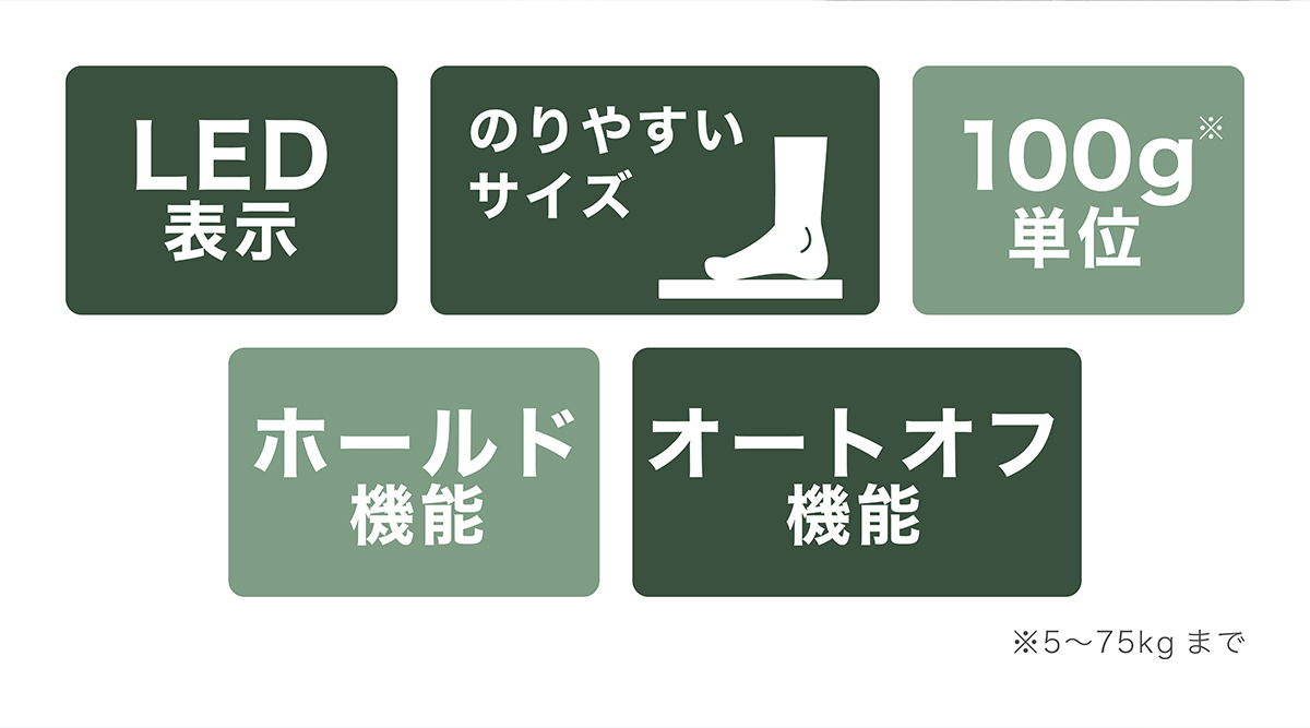 - 5kg以上75kg以下は100g単位、75kg超え150kg以下は200g単位で測定