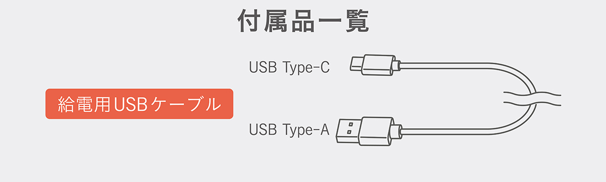 - 給電用USBケーブル1本(USB Type-A - USB Type-C)