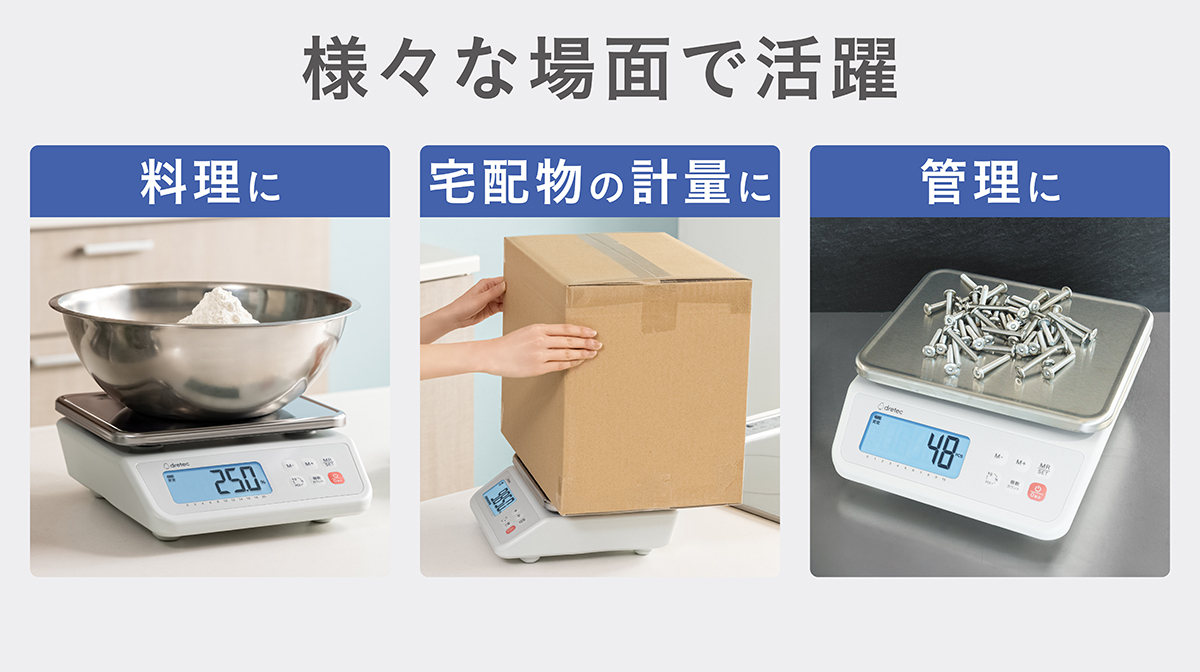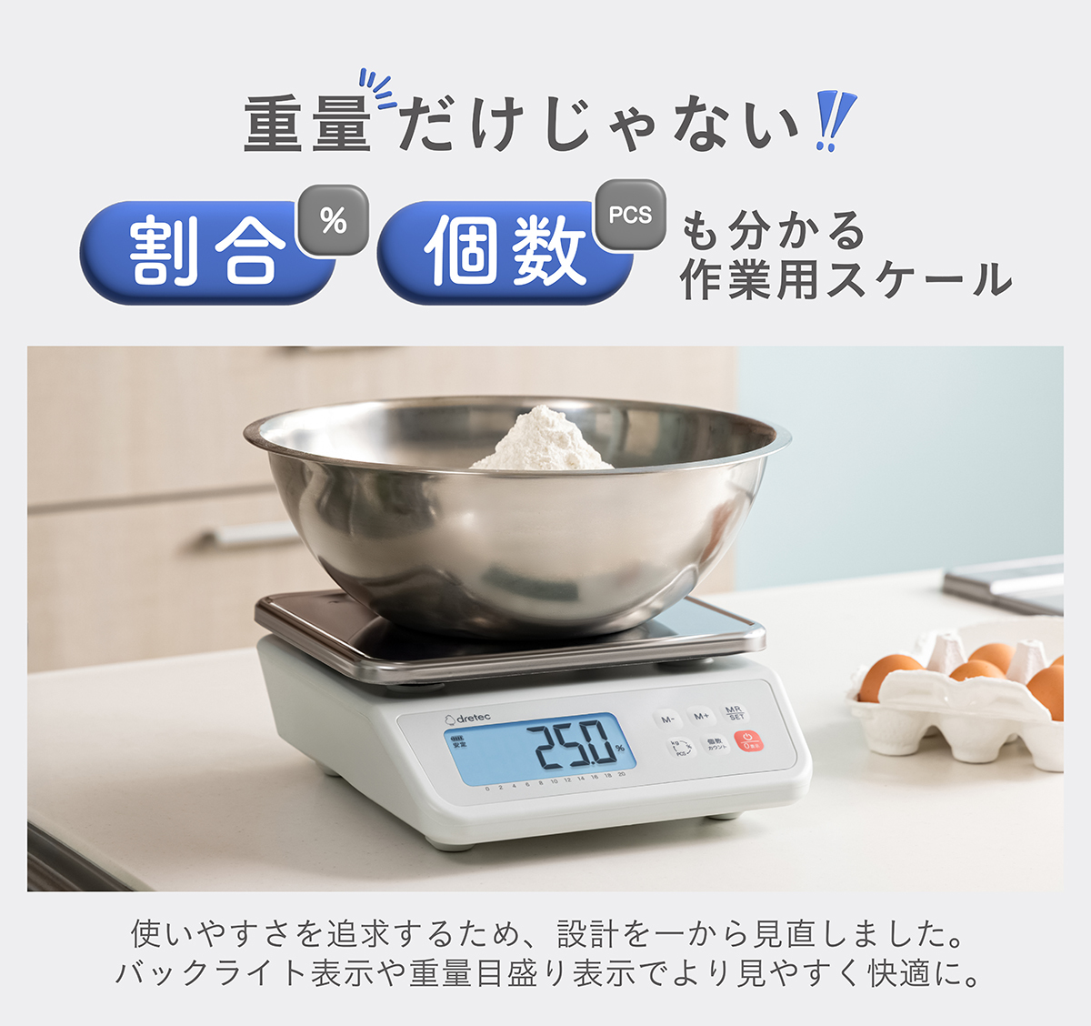 - 設定した重さに対して、計量物の重さを割合で表示する%表示機能付