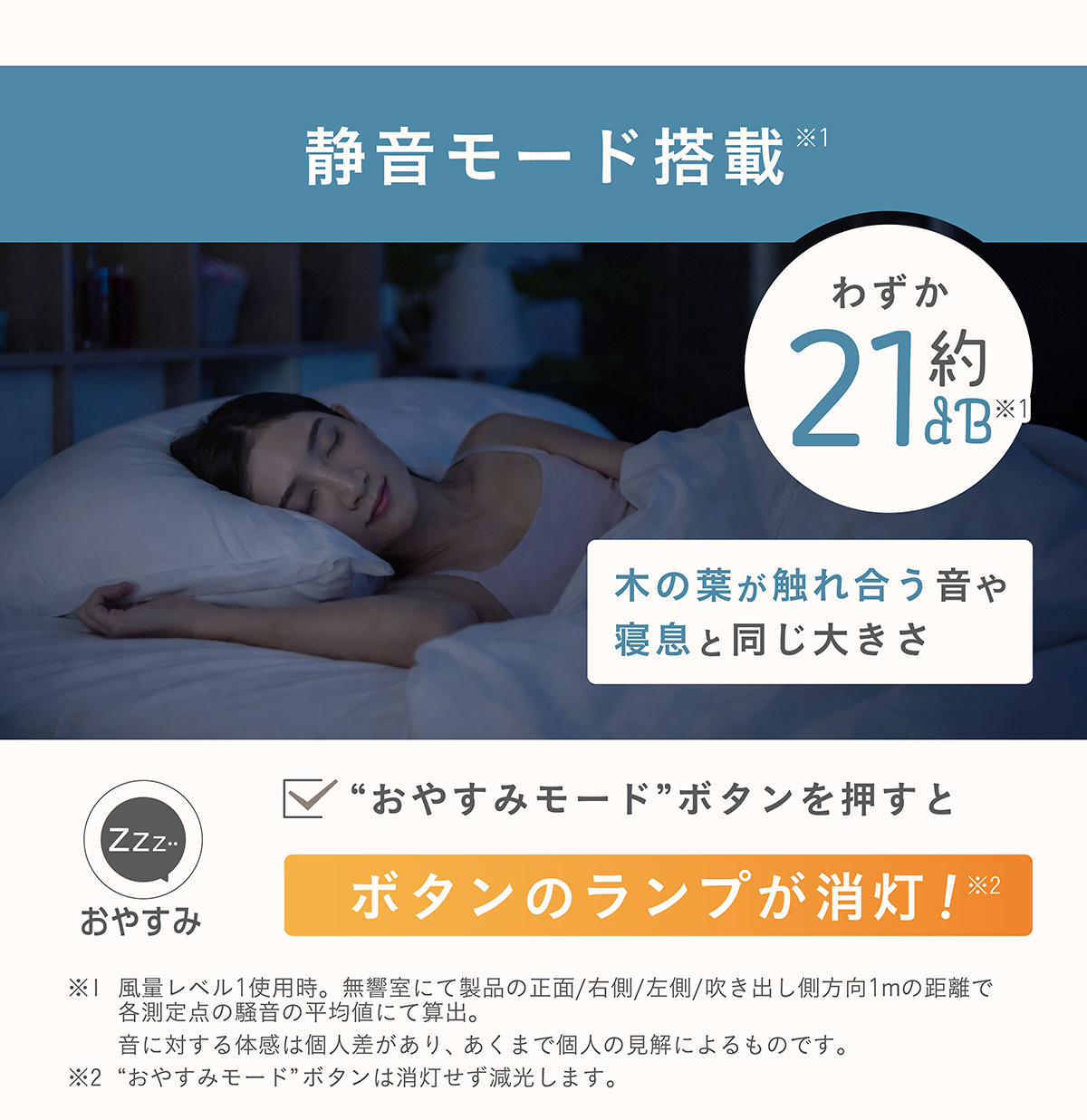 21dB(風量1、おやすみモード)