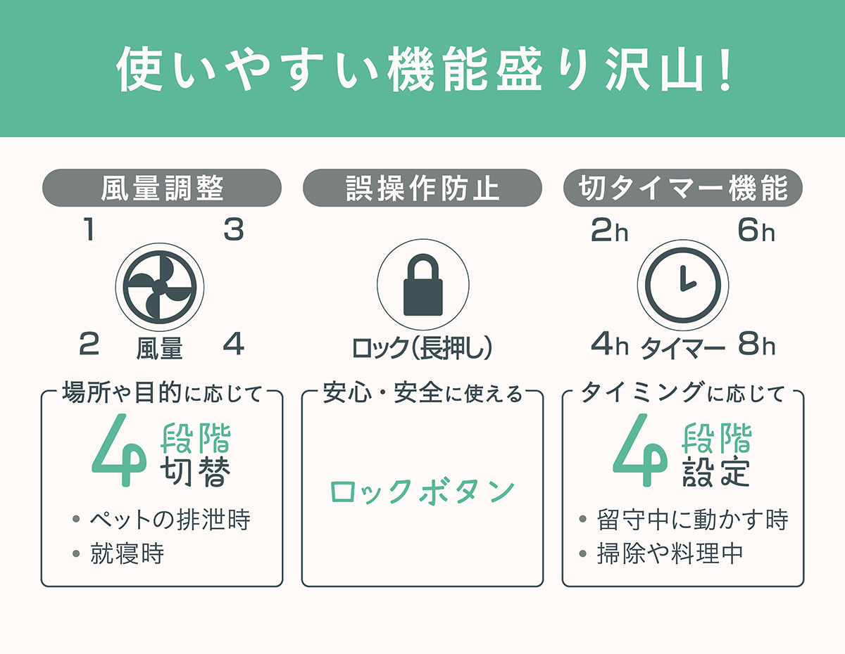 - 切タイマー機能/誤操作防止機能付