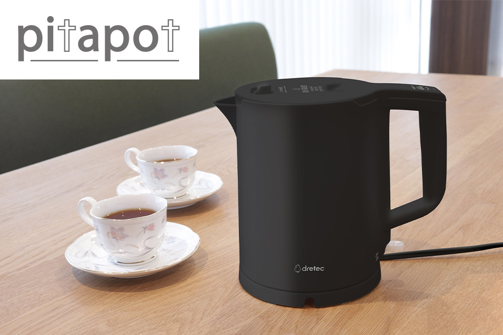 倒れてもこぼれにくい転倒流水防止構造“電気ケトル「ピタポット」0.8L”新色発売