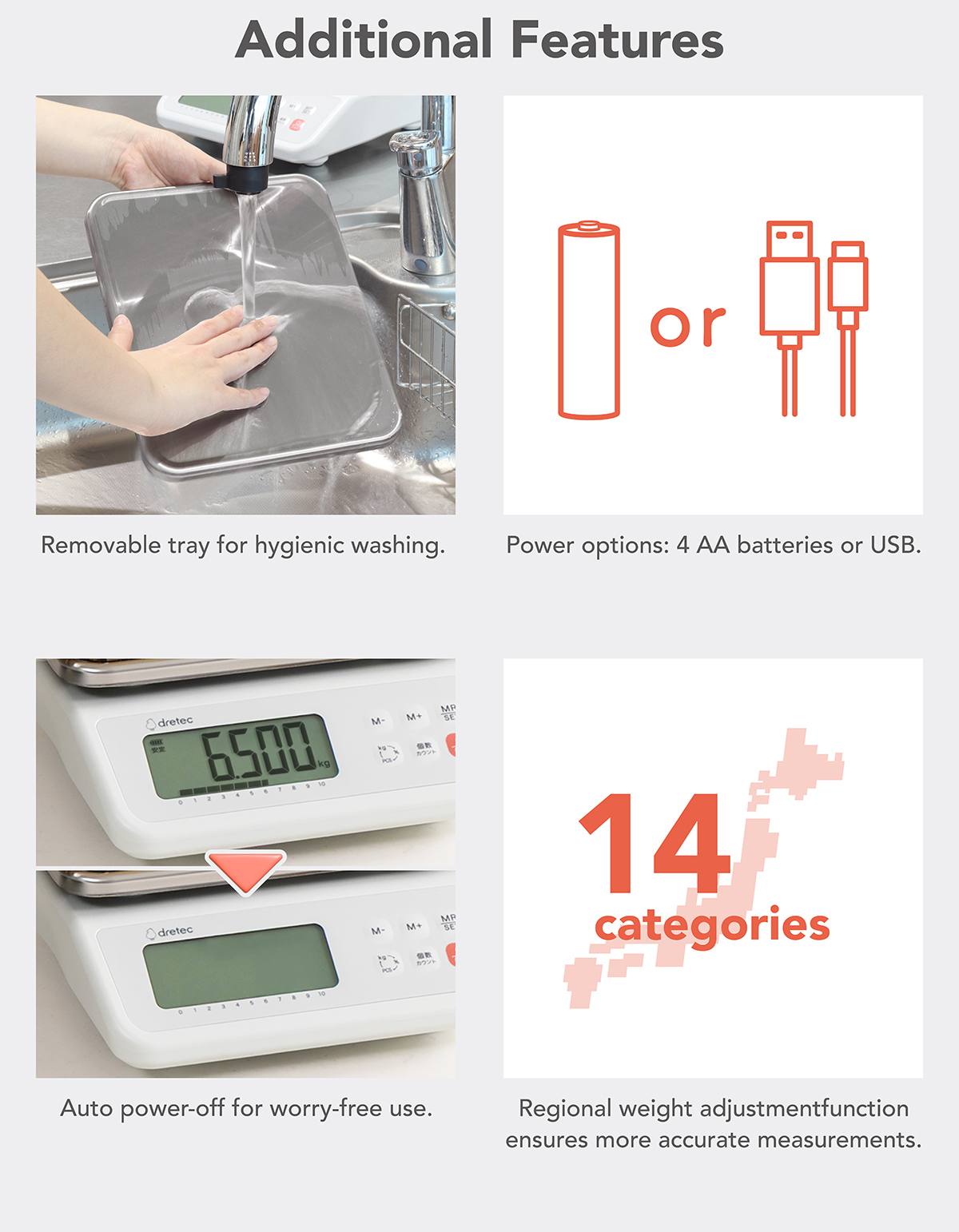 - Regional weight adjustment function with auto power-off