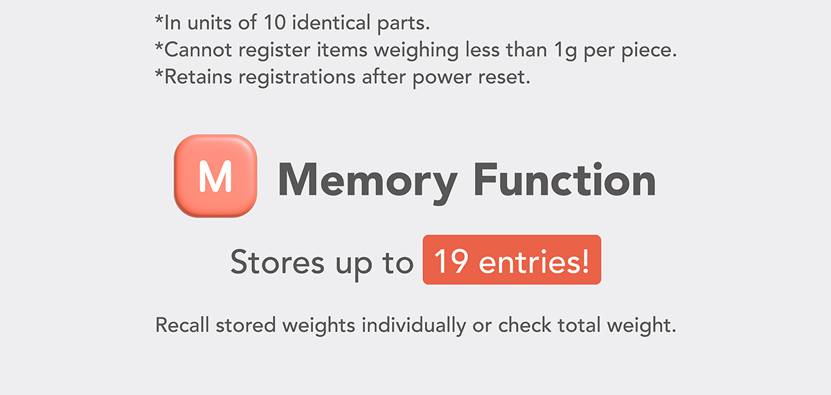 - Memory function stores up to 19 records