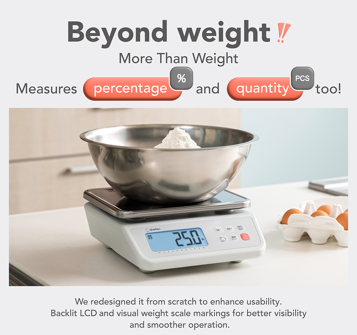 - Weight scale for intuitive weight reading