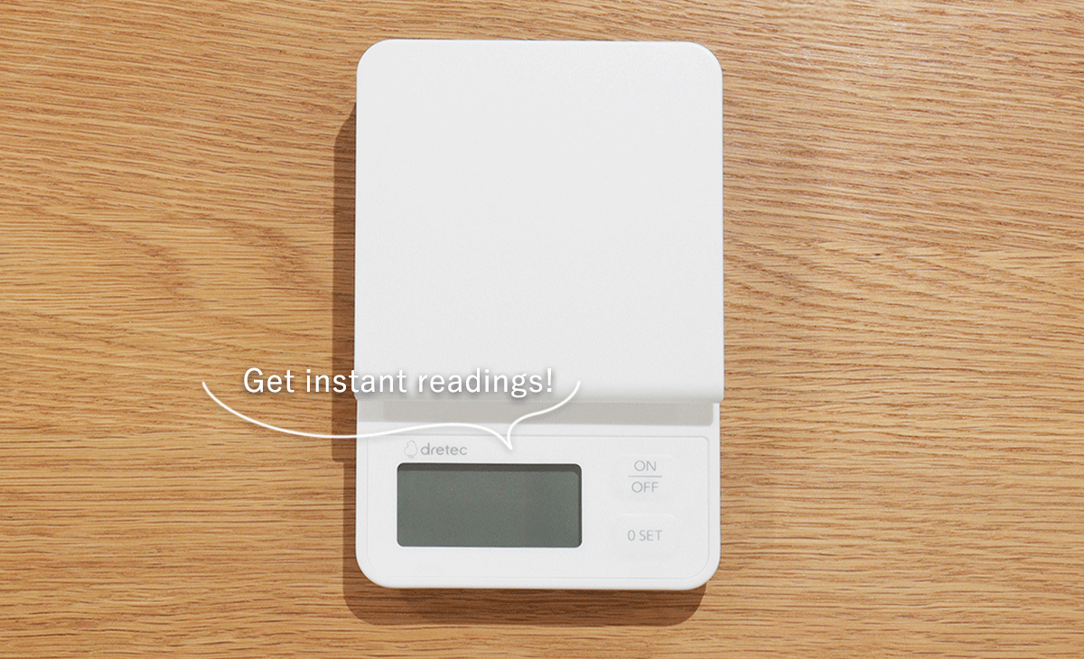 Simply press the “0SET” button to subtract the container’s weight, and easily add ingredients one by one!