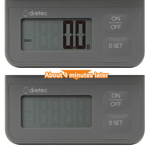 Auto power off after approximately 4 minutes.