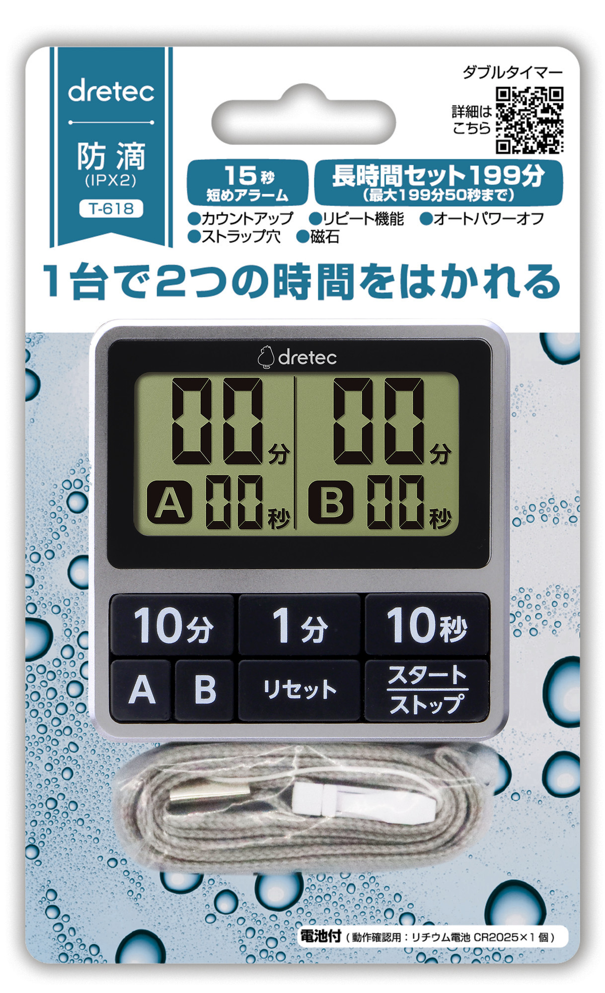 it is easy to check the time. In addition, it is a drip-proof type equivalent to IPX2 that can be used even with wet hands.