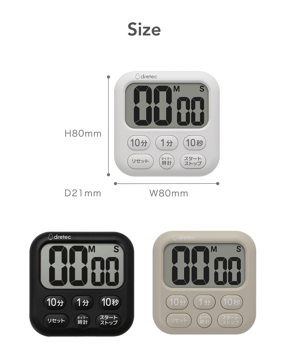 - Easy setting with "10 Min", "1 Min", and "10 Sec" buttons