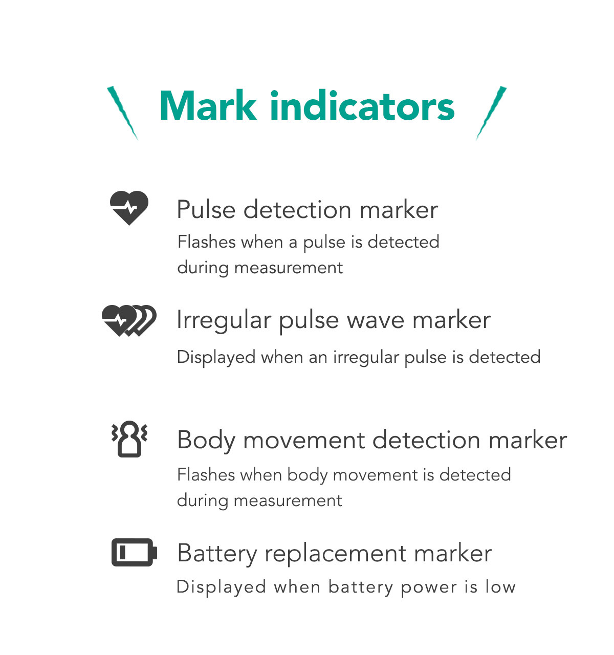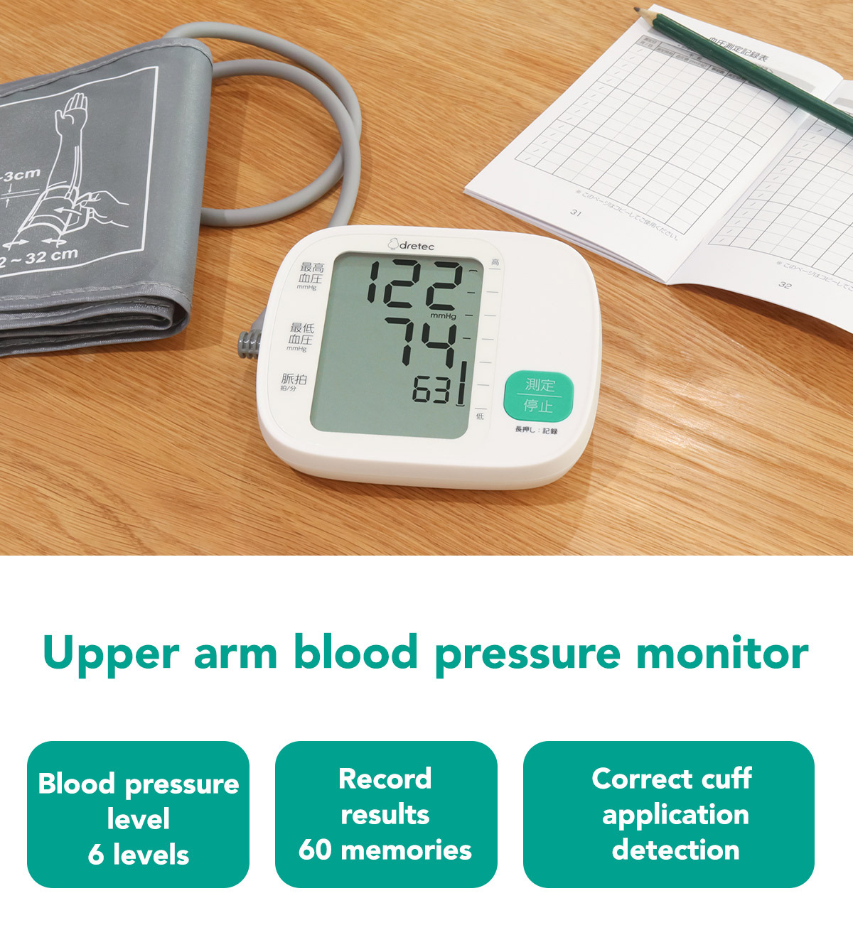 - An indicator shows whether the cuff is properly wrapped
