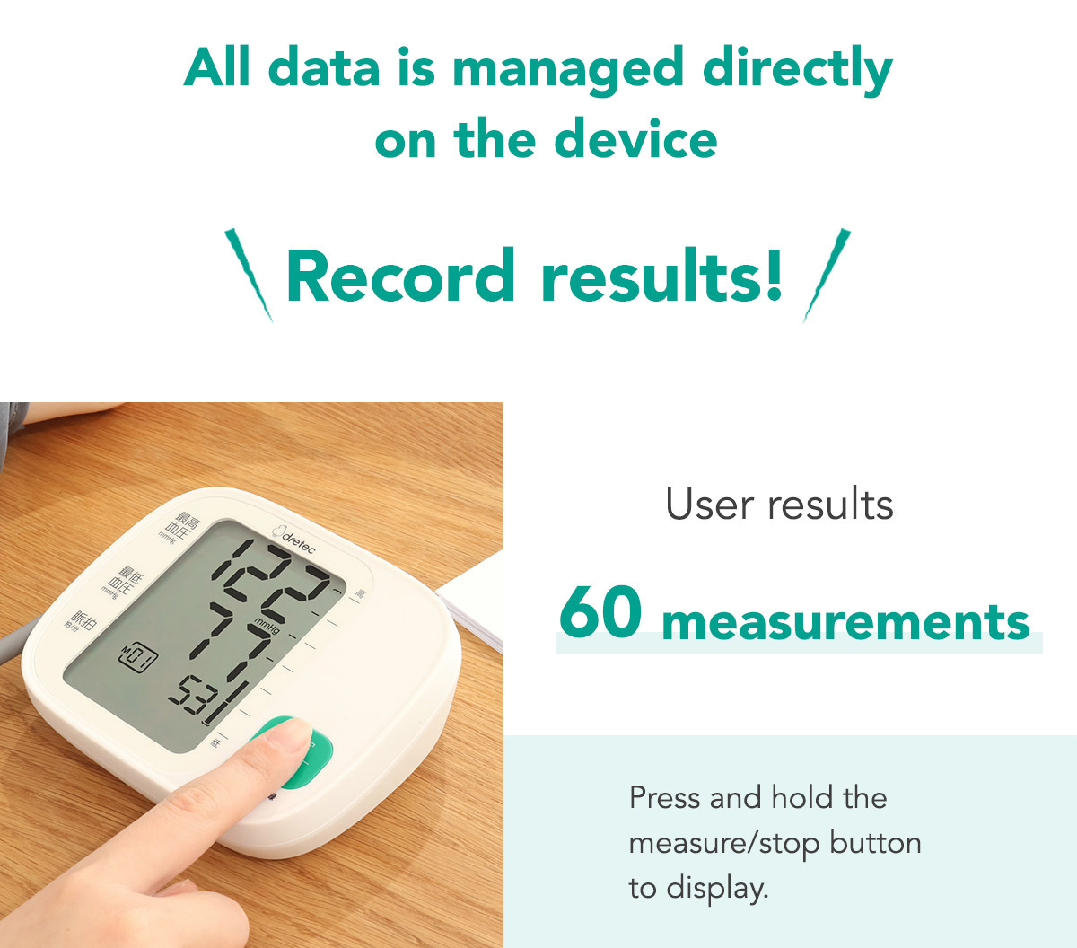 Records up to 60 user measurements