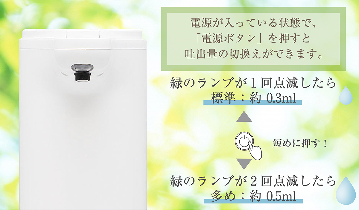 吐出量を2段階に調整できるので、