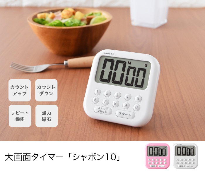 カウントアップ、カウントダウン、リピート機能があり、料理だけでなく、