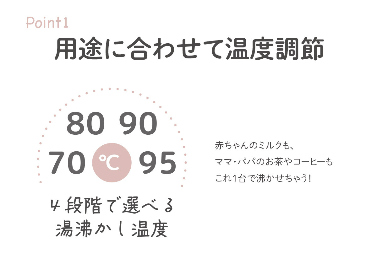 赤ちゃんのミルクから旅先のドリンク、オフィスのマイケトルなど、幅広くご使用いただけます。