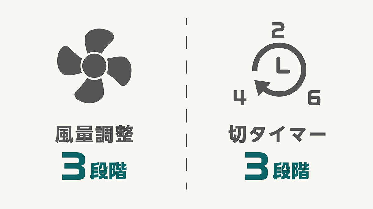 - 3段階で風量調節ができる