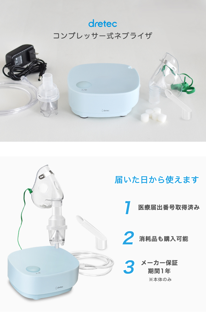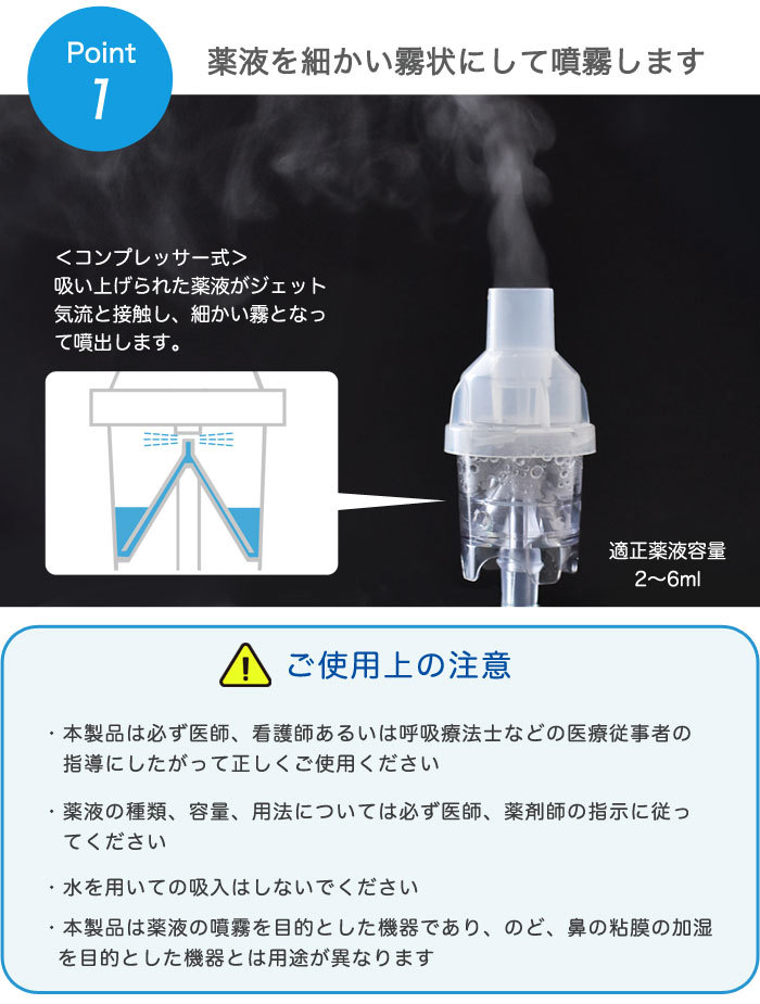 - 2つの吸入スタイル(子供用マスク、マウスピース)