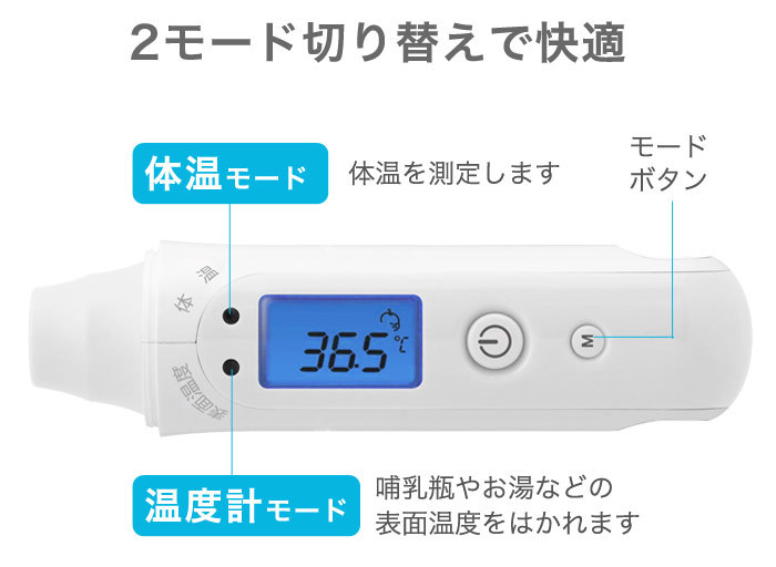 - 体温値37.5℃以上は赤LEDが点滅してお知らせ(発熱お知らせ機能)