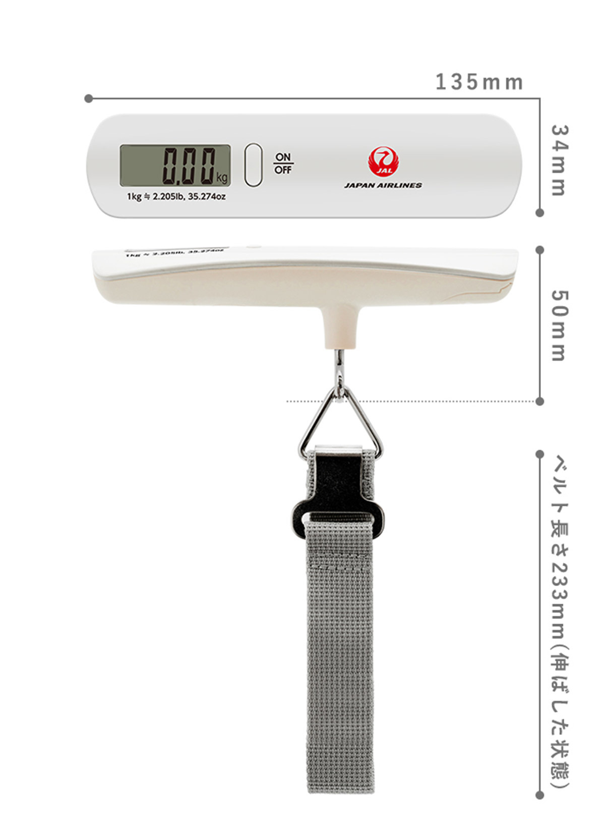 日本航空のロゴ入りモデル!手荷物の重量オーバー防止に!