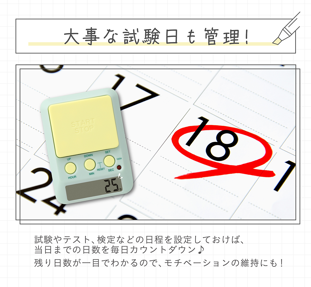 - テストや試験に役立つ、日にちカウントダウン機能付(デイカウント機能)